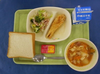 これからの季節によく登場するおでんの給食です。おでんにはいる大根は