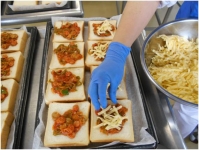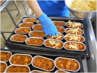 ミートグラタンは手作りです。グラタンの具を作り、カップに入れて、上にチーズをのせて