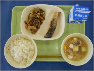 ごはん 牛乳 サケの香味焼き ぜんまいの炒め煮 豚汁