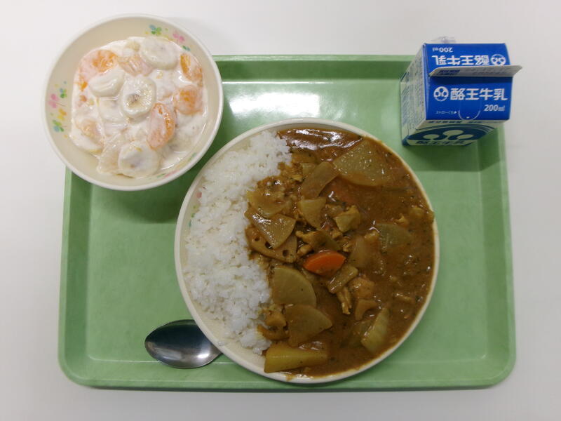 冬野菜カレーライス 牛乳 フルーツヨーグルトあえ