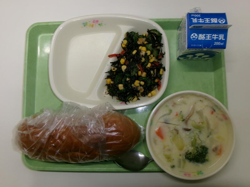 黒糖パン 牛乳 ゆずドレひじきサラダ 冬野菜のクリーム煮