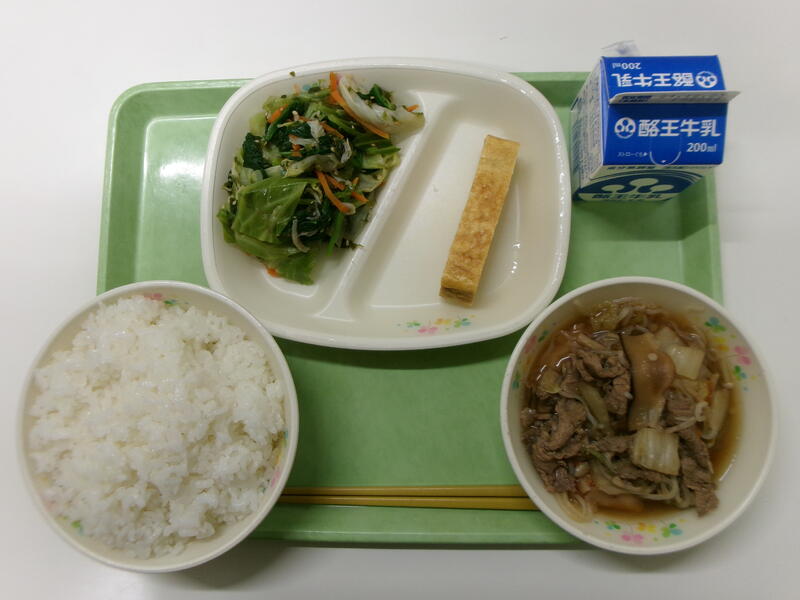 ごはん 牛乳 厚焼き玉子 磯香あえ すきやき煮