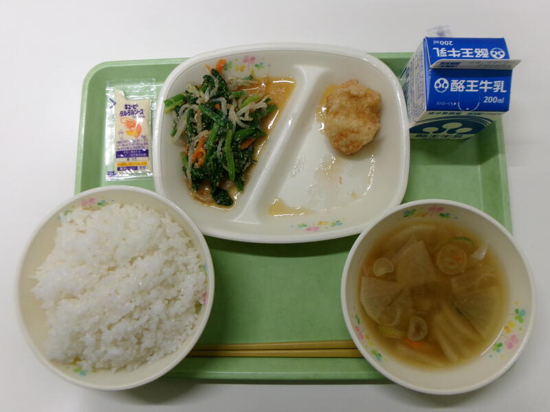 ごはん 牛乳 チキン南蛮 ごまあえ 根菜のみそ汁