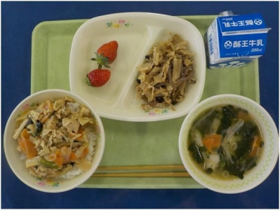 ○ポイント 今日は節分ですので、節分にちなんだ給食です。いわしや黒豆の