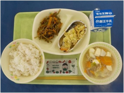 ○ポイント 今年最初の給食です。お正月料理を2品いれました。「炒めなます」と