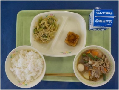ごはん 牛乳 揚げ出し豆腐 もやしのごまあえ 肉じゃが
