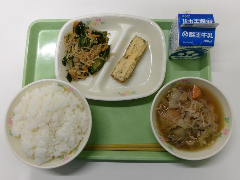 ごはん 牛乳 五目厚焼き玉子 大根ごまサラダ すきやき煮
