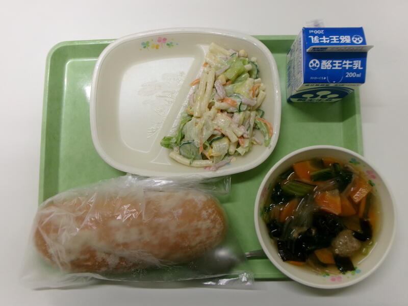 ミルク揚げパン 牛乳 マカロニサラダ 肉団子スープ