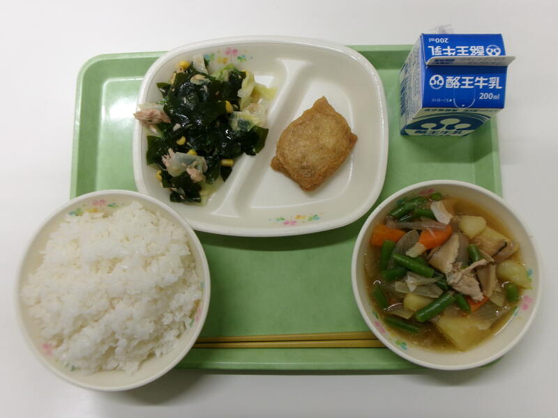 ごはん 牛乳 きのこ信田煮 わかめサラダ 肉じゃが