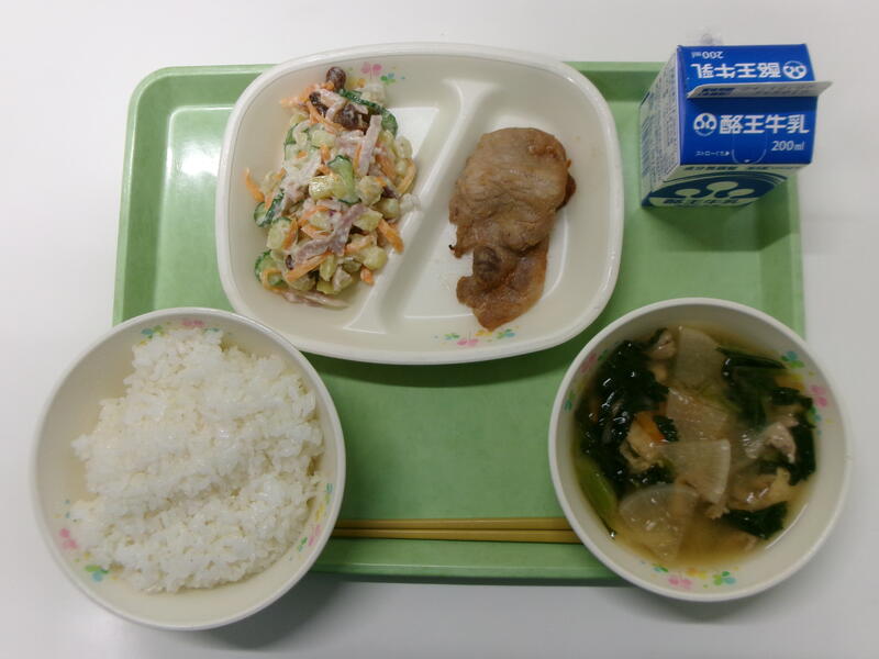 ごはん 牛乳 豚肉の生姜焼き さつまいものサラダ 大根汁