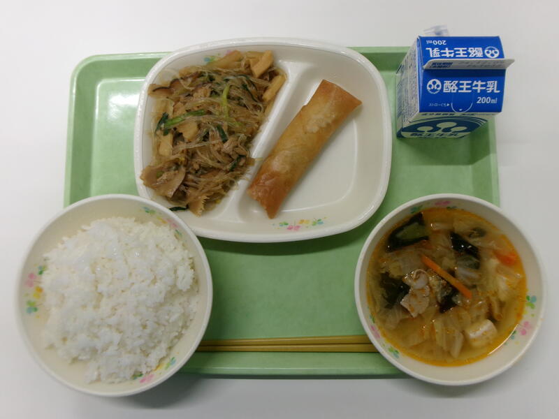 ごはん 牛乳 春巻き マーボー春雨 サンラータン