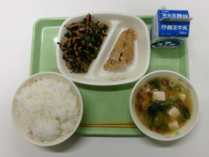 ごはん 牛乳 さばの竜田揚げ ひじきの炒め煮 なめこ汁