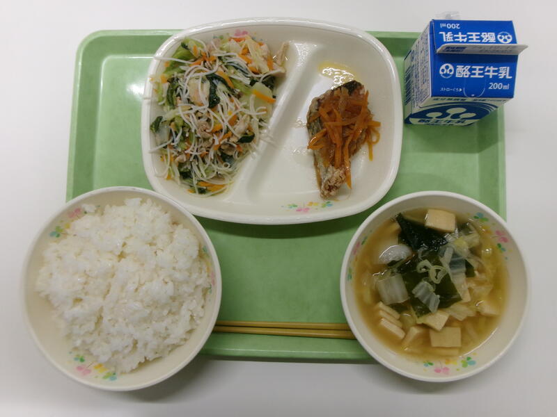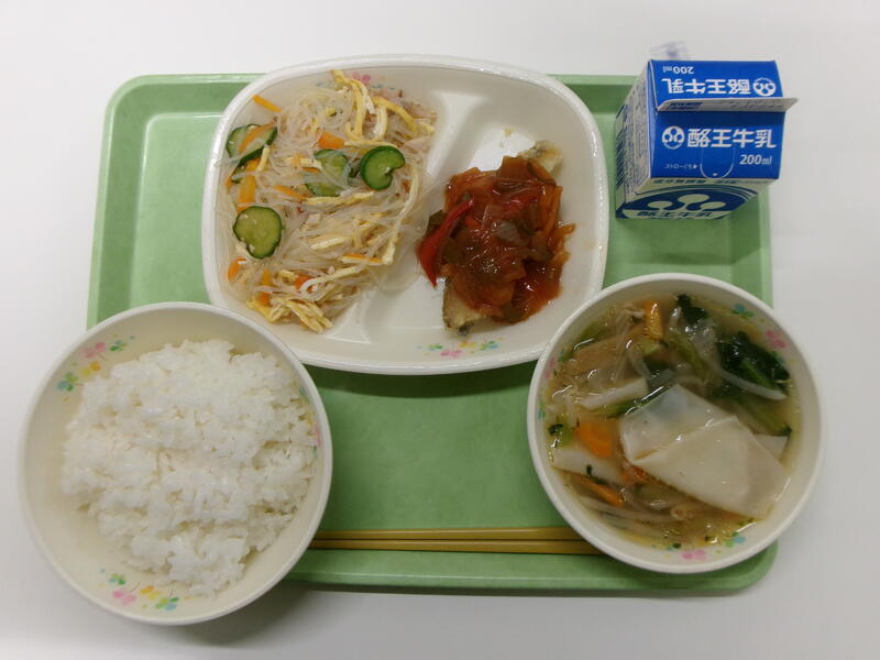 ごはん 牛乳 かつおの南蛮漬け ビーフン炒め 凍み豆腐のみそ汁
