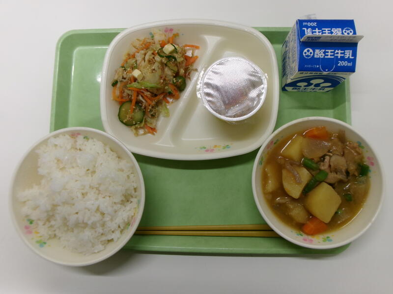 ごはん 牛乳 納豆 元気サラダ 肉じゃが