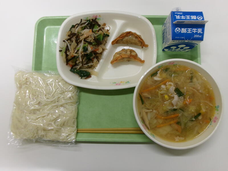 みそラーメン 牛乳 揚げぎょうざ 切り干し大根のナムル