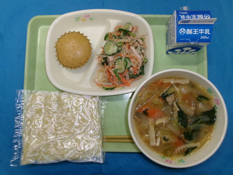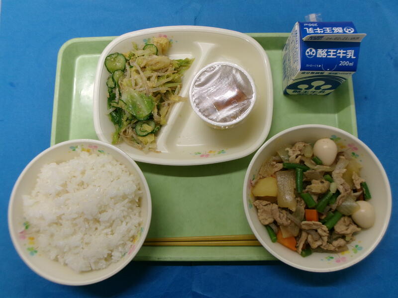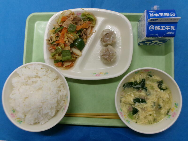 ごはん 牛乳 シューマイ ホイコーロー 卵スープ