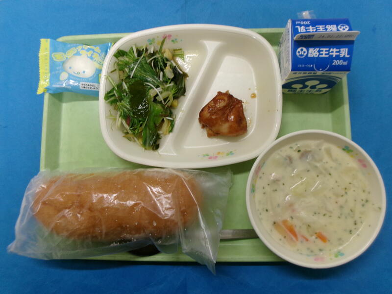 揚げパン 牛乳 タンドリーチキン 海藻サラダ シチュー 大福アイス