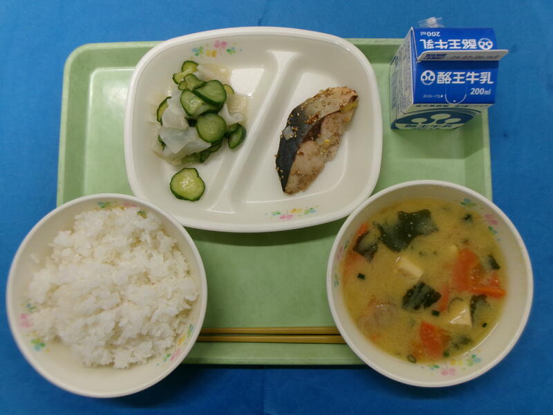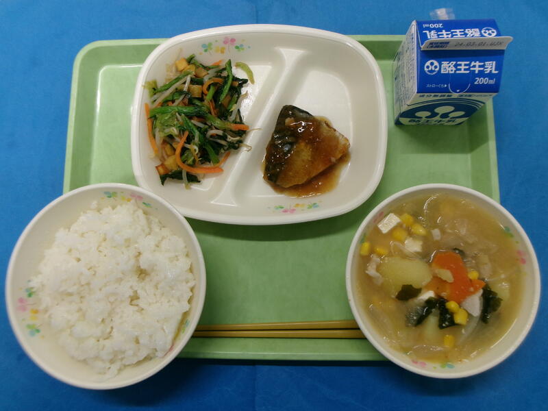 ごはん 牛乳 さば煮付け 小松菜のカリカリあえ どさんこ汁