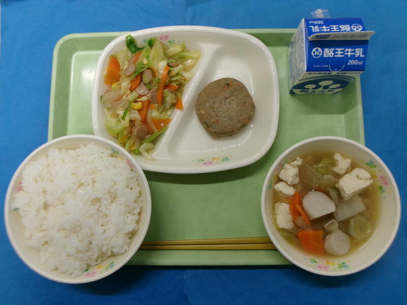 ごはん 牛乳 あじのさんが 野菜炒め けんちん汁