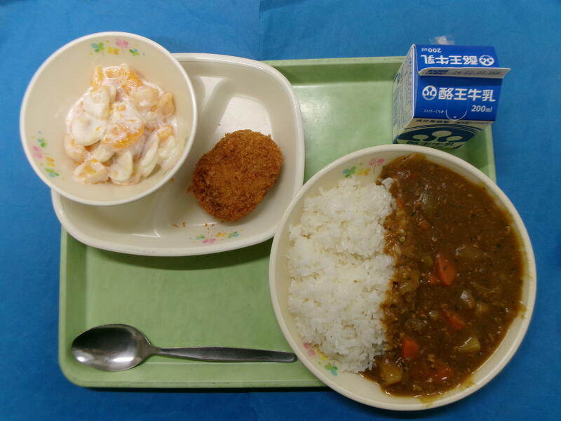 カレーライス 牛乳 納入組合様提供ヒレカツ フルーツヨーグルトあえ