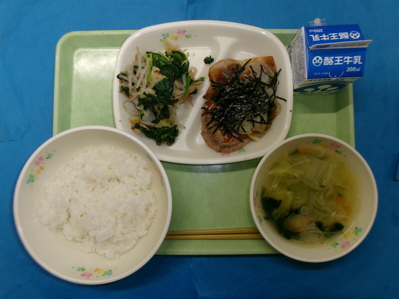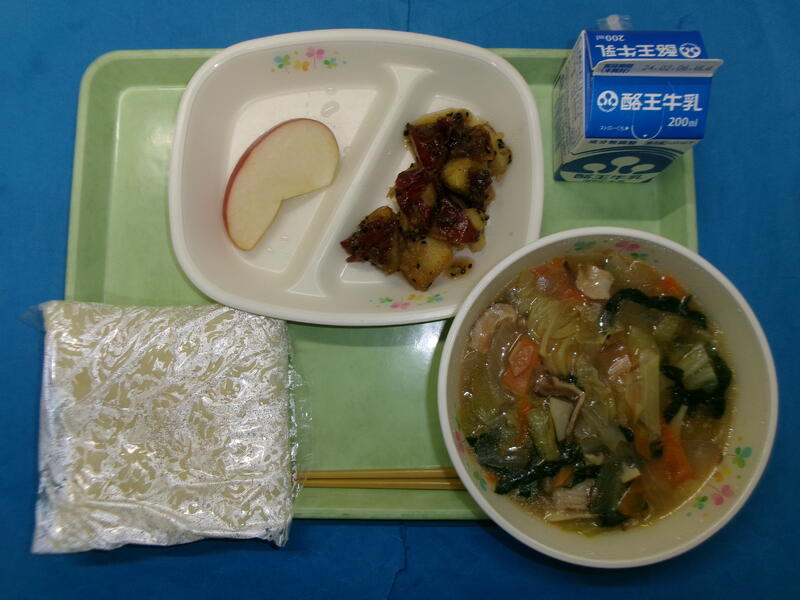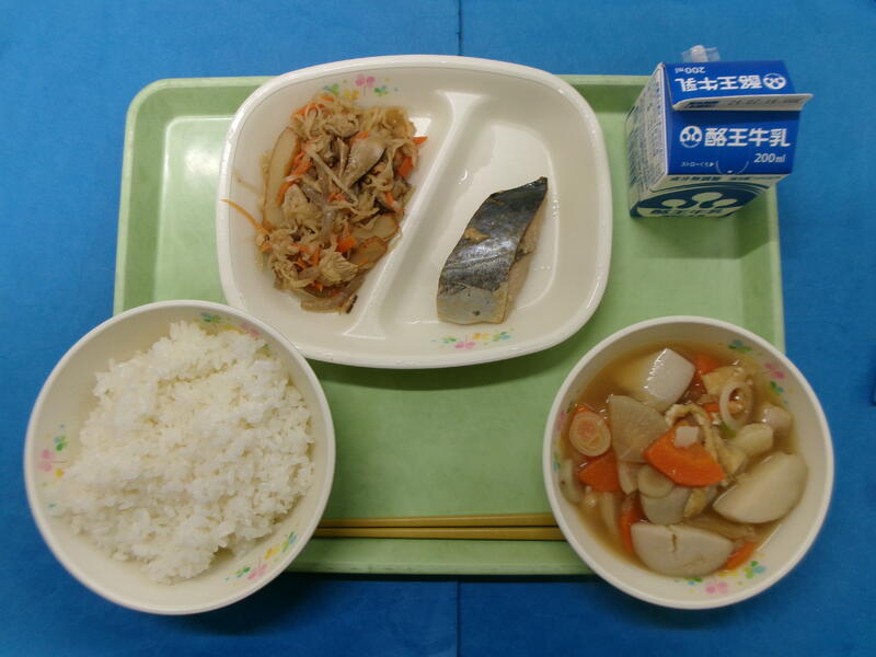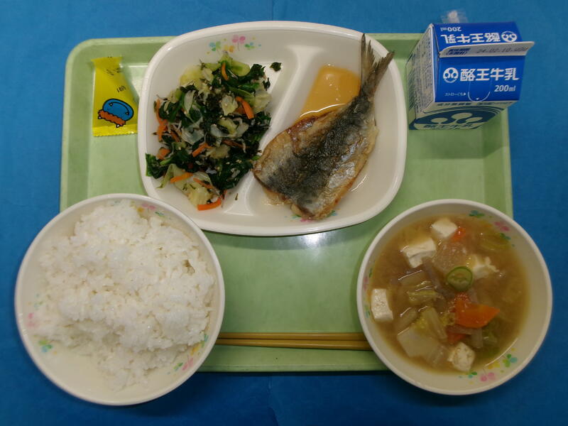 ごはん 牛乳 いわしの蒲焼き 磯香あえ けんちん汁 福豆