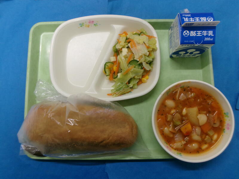 きなこ揚げパン 牛乳 チーズサラダ ミネストローネ