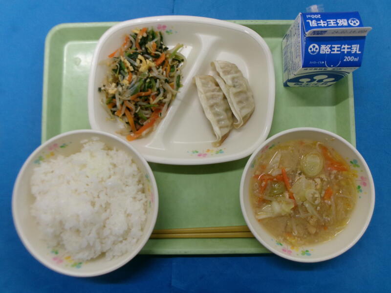 ごはん 牛乳 ぎょうざ ナムル 肉みそスープ