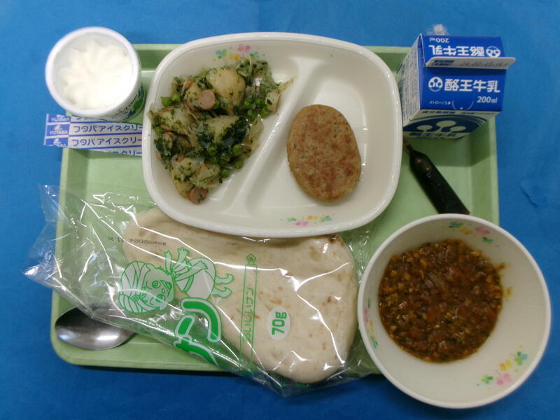 ナン 牛乳 ミルメーク ハンバーグ ジャーマンポテト キーマカレー バニラアイス