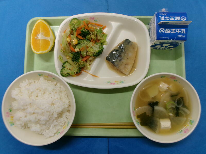 ごはん 牛乳 さばのみそ煮 ブロッコリーのごまあえ じゃがいもの味噌汁 はるか