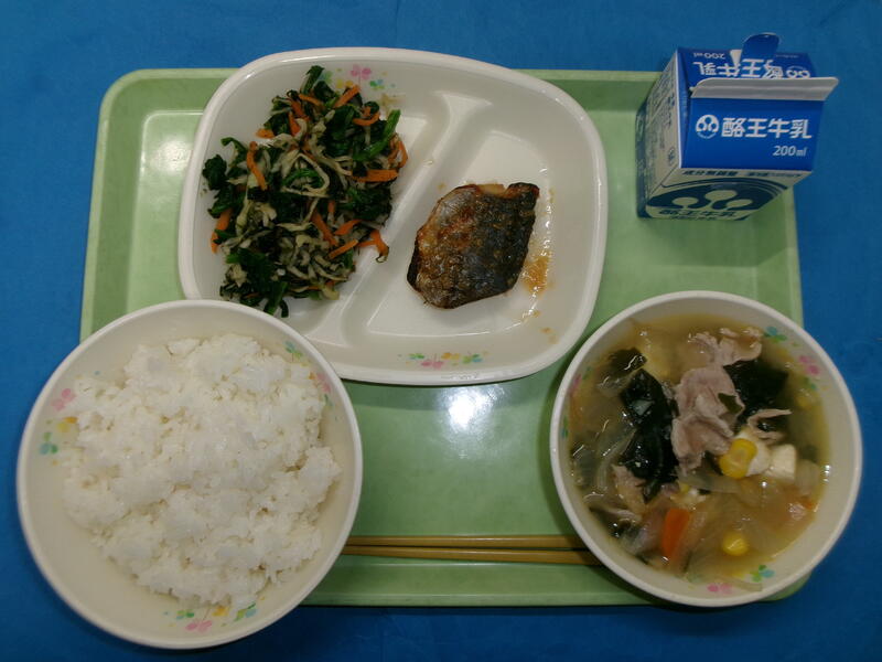 ごはん 牛乳 さわらのみそ幽庵焼き 切り干し大根ののり和え どさんこ汁