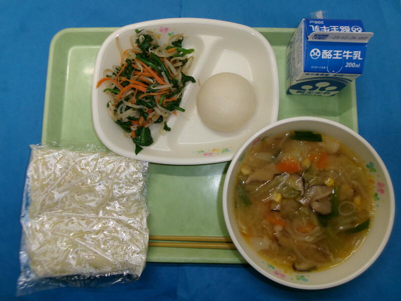 みそラーメン 牛乳 ミニ肉まん もやしのラー油あえ