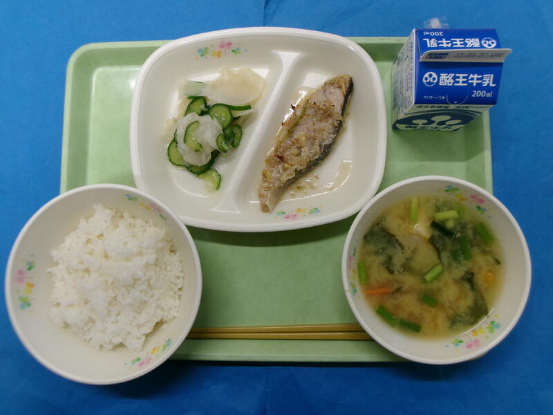 ごはん 牛乳 ぶりのねぎ塩焼き かぶの黒酢和え 豆まめ味噌汁