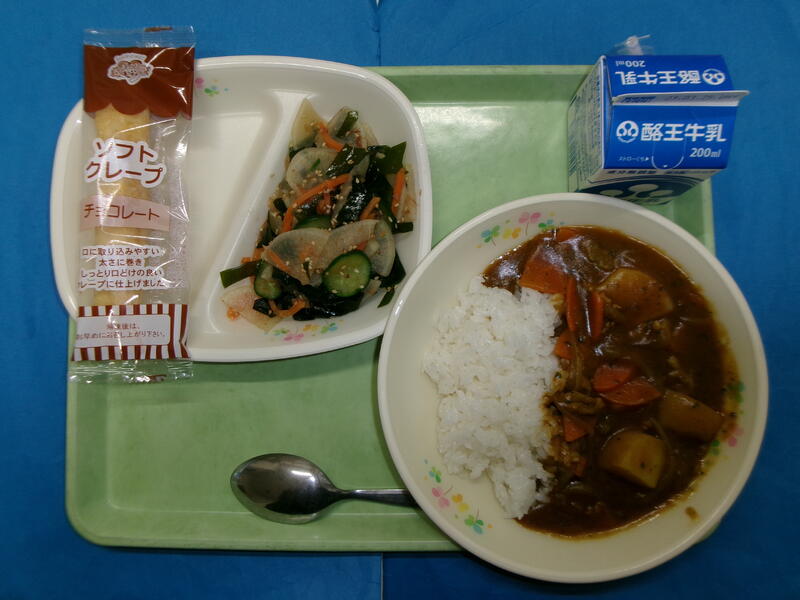 ポークカレーライス 牛乳 大根ごまサラダ チョコクレープ