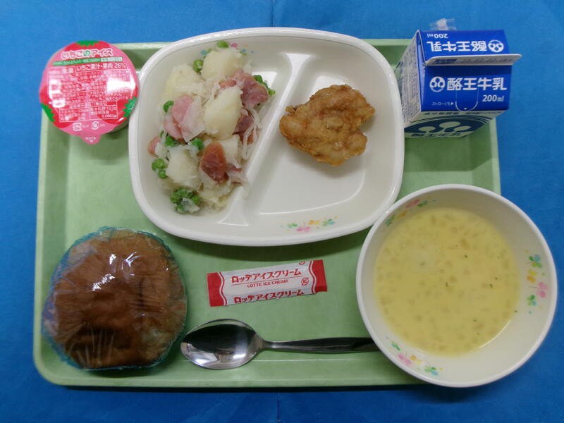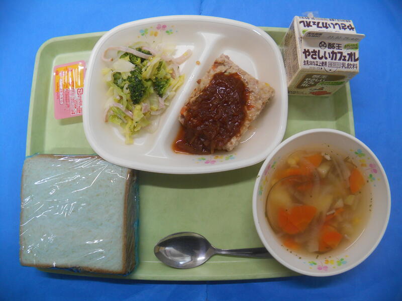 手作りミートローフケチャップソースがけの献立 2023年2月15日 11時54分 続きを読む 食パン カフェオレ牛乳 りんご&マーガリン 手作りミートローフケチャップソースがけ ブロッコリーサラダ コンソメスープ 閉じる
