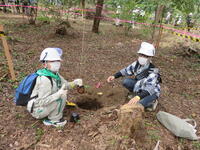 福島県は、「森林づくりを続ける、広げる、繋げる」をテーマとして、時代を超えて希望と喜びを繋ぐ森林づくりに取り組んでおり、南相馬市で開催した「第69回全国植樹祭」の開催理念を引き継ぐイベントとして、平成30年度から「ふくしま植樹祭」を毎年実施しています。今年は、恩賜林を有していることから矢吹町が開催地として選ばれ、9月11日(日)に実施されました。恩賜林が矢吹中学校敷地に隣接しているため、開催イベントは、恩賜林と中学校の体育館北側駐車場などを利用して行われました。天気にも恵まれ、1,000ほどの参加者が、緑を守るイベントを楽しみました。緑の少年団として参加した町内の小学6年生達も、中学校に入学して、植樹・育樹をした森を身近に見ることができるようになるのが楽しみですね。