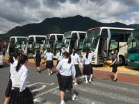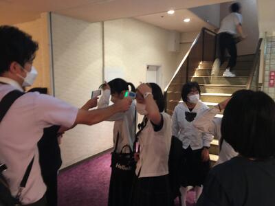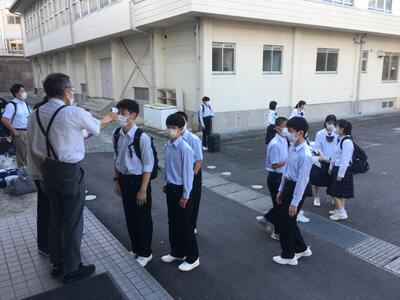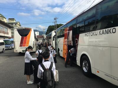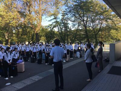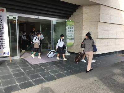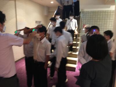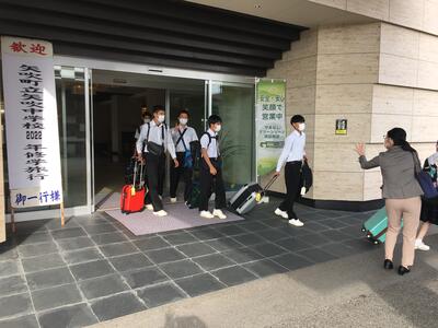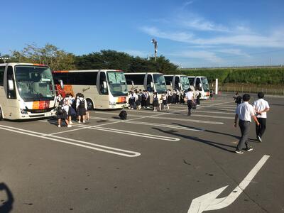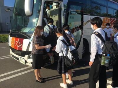 3年生の修学旅行は、本日予定どおり無事に出発することができました。天気も良さそうで、楽しく充実した3日間になるといいです。検温、消毒済ませて出発!