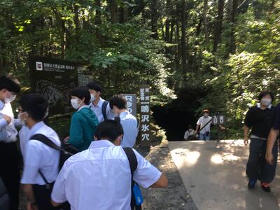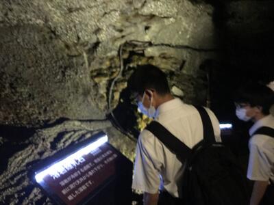 ほぼ1時間半の時間をかけて、鳴沢氷穴・青木ヶ原樹海・富岳風穴を歩いて散策しました。ガイドさんが付いて、氷穴や風穴ができたメカニズムや樹海の樹木や苔の特徴ある植生などについて説明してくださいました。いっぱい歩いたので今晩はぐっすり眠れそうです。