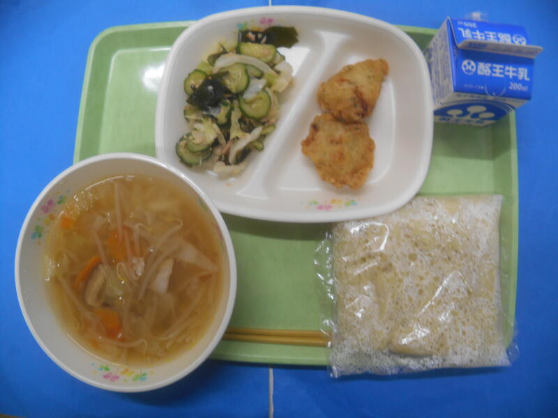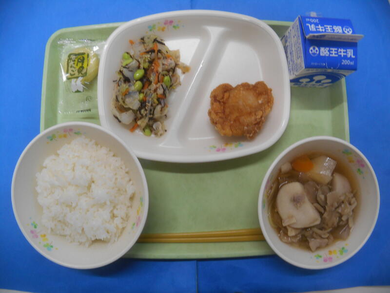 十五夜にちなんだ献立 2022年9月9日 10時06分 続きを読む ごはん 牛乳 鶏の唐揚げ ひじきと豆のサラダ お月見汁 お月見団子ーひとくちメモーお月見のお供えの丸い団子は、月に見立てて感謝の気持ちを表します。 閉じる