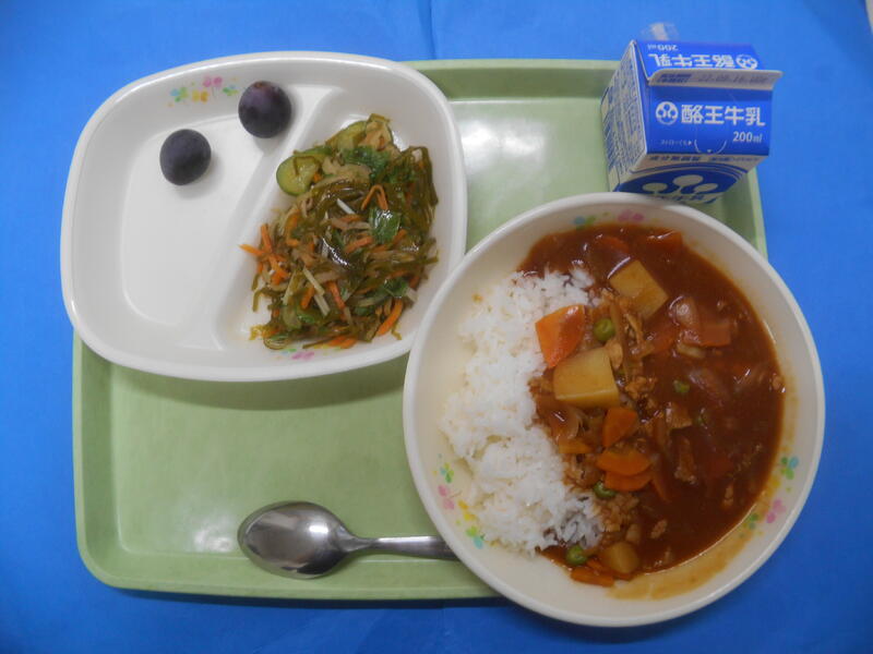 秋の果物を味わおう 2022年9月8日 11時14分 続きを読む ハヤシライス 牛乳 カミカミサラダ 巨峰ーひとくちメモー世界には1万種類以上のぶどうの品種があります。粒が小さく種のないデラウェア、大粒で甘みの強い巨峰やピオーネ、色が緑でさわやかな味のマスカットなどいろいろな種類があります。 閉じる