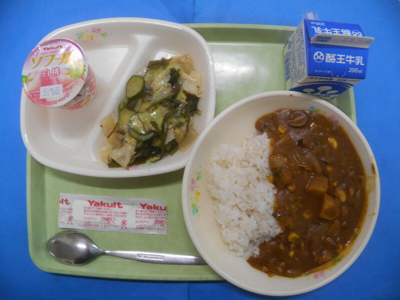 1学期最後の給食 2022年7月19日 13時32分 続きを読む 夏野菜カレーライス 牛乳 こんにゃく海藻サラダ ヨーグルトーひとくちメモー今日は、夏の野菜がたっぷり入ったカレーです。1学期最後の給食です。 閉じる