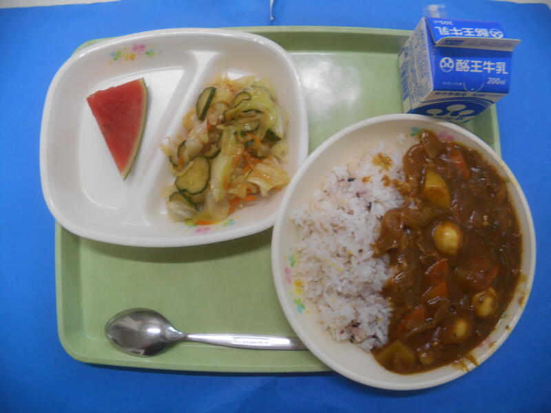 すいかについて知ろう 2022年8月26日 11時25分 続きを読む うずら卵入りカレーライス 牛乳 和風大根サラダ すいかーひとくちメモーすいかに含まれるカリウムは、疲労回復ならびに利尿作用があります。夏バテに効果があるとされています。 閉じる