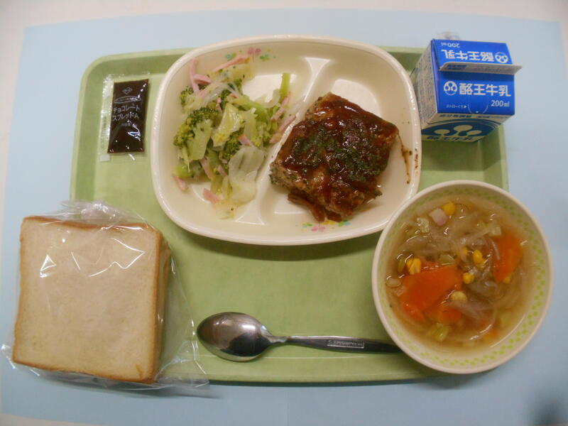 手作りミートローフの献立 2022年2月9日 09時51分 続きを読む 食パン 牛乳 チョコクリーム ミートローフケチャップソースがけ ブロッコリーサラダ コンソメスープーひとくちメモー今日のミートローフは、鶏ひき肉・豚ひき肉・玉ねぎなどの材料を混ぜ合わせ、鉄板に敷き焼いて、切り分けて作った手作りです。ケチャップソースも手作りです。 閉じる