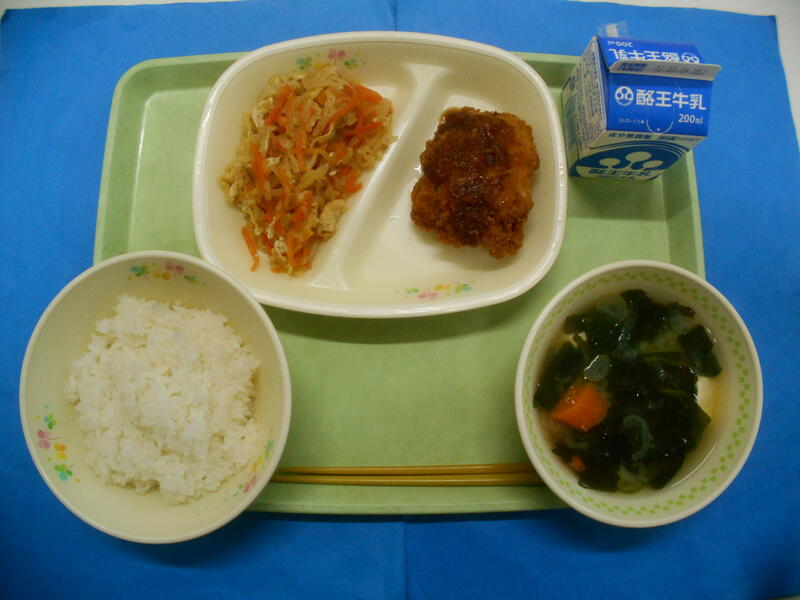 手作りチキンみそカツの献立 2022年2月24日 13時11分 続きを読む ごはん 牛乳 手作りチキンみそカツ ひきな炒り 豆腐のみそ汁ーひとくちメモーカツに、みそ・砂糖などを加えて甘くしたタレをかけて食べるみそカツは、名古屋の料理で名古屋めしとも呼ばれています。 閉じる
