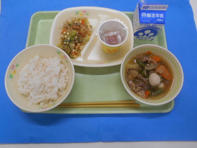 2021年4月20日 11時15分麦ごはん 牛乳 納豆 元気っこサラダ 肉じゃが