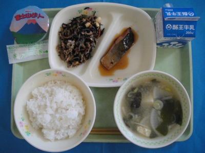 ごはん じゃがいものみそ汁 いなだのしょうが煮 ひじきのいため煮 富士山ゼリー 牛乳