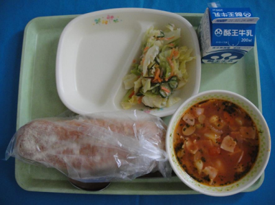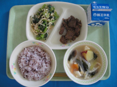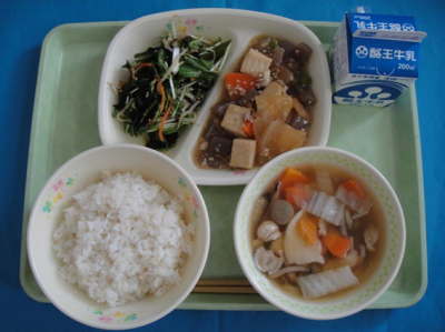 ※ 今日は、16日実施予定であった献立の副菜(小松菜のごまチーズあえ)を変えて、提供しています。