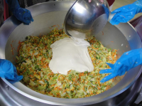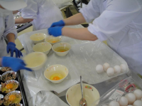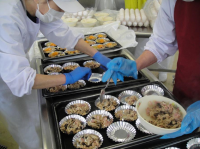 今日は、主菜の「きのこと大豆の巣ごもり卵」を給食室で手作りしました。約500個、調理員さんが卵を割ってくださいました。栄養・愛情たっぷりの給食をきれいに食べて、風邪に負けない体をつくっていきましょう!
