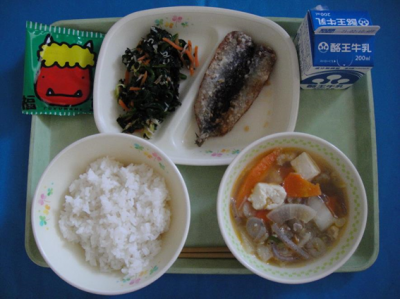 ごはん けんちん汁 いわしのかば焼き 磯香あえ 福豆 牛乳