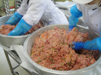 調理員さんが みなさんの健康を考えてつくってくれた愛情たっぷりの福島牛100%ミートローフを味わいましょう。