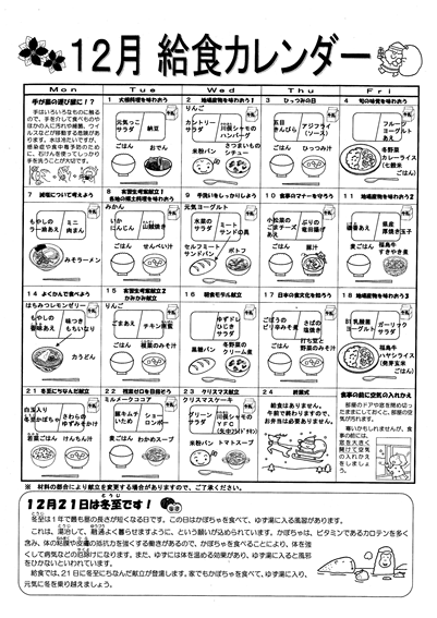だしのきいた豚汁をはじめとした和食の給食を、味わっていただきましょう。